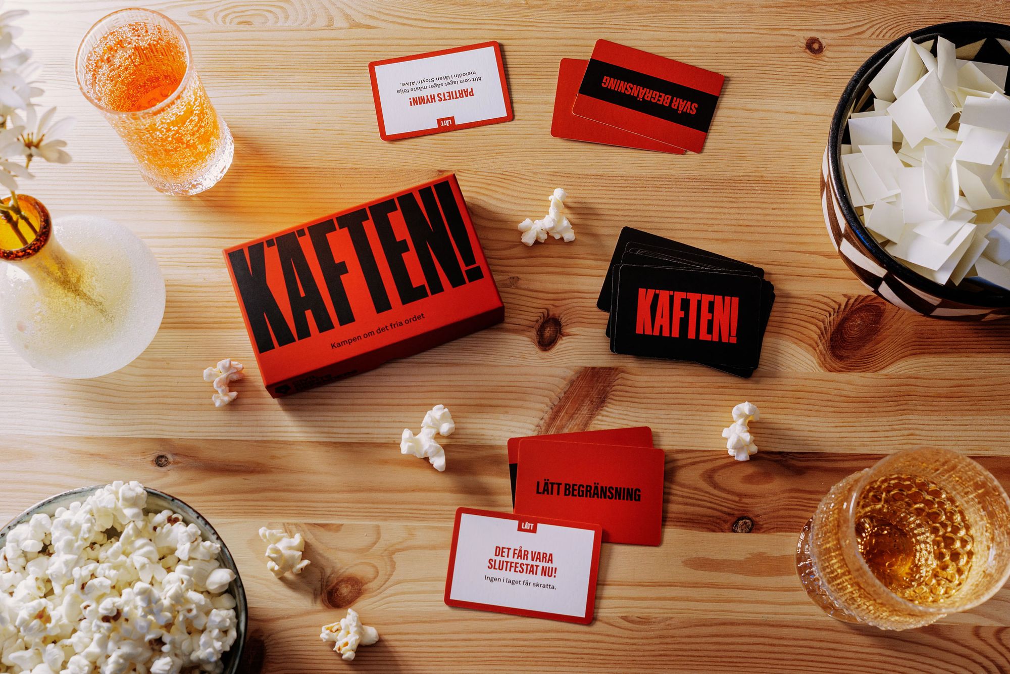 KÄFTEN! är ett snabbspelat sällskapsspel där yttrandefriheten står i centrum. För att vinna måste du begränsa andras möjlighet att uttrycka sig. Är du redo för kampen om det fria ordet?